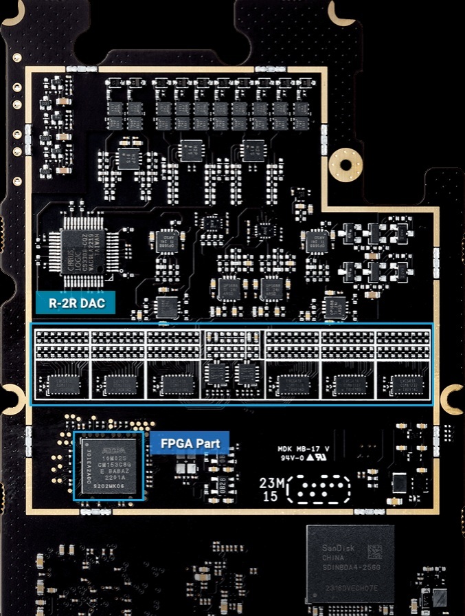 SE300採用品牌自行開發的FPGA(Field Programmable Gate Array)進行優化設計,而不是使用常見的商業半導體芯片組,通過自家的演算法將數碼訊號傳輸到 R-2R 解碼器。