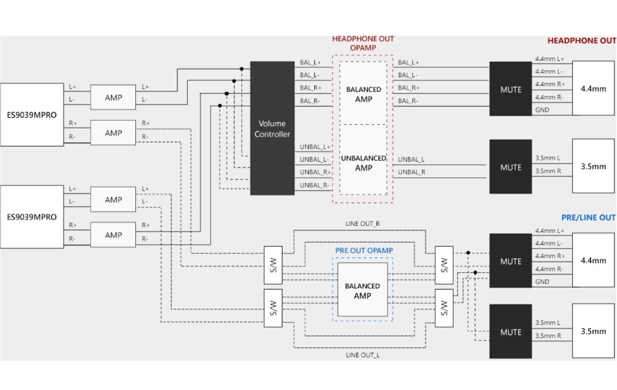 [PRE OUT] Unbalanced Out 3.5mm (3.5ohm) │ Balanced Out 4.4mm (5.7ohm)