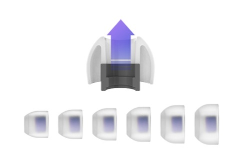 筆直的內部結構設計成完美的線條,保證聲音以線性方式移動,增強隔音性能,增加空間感。總共包含六個耳塞,為您提供舒適的貼合和更好的音質。