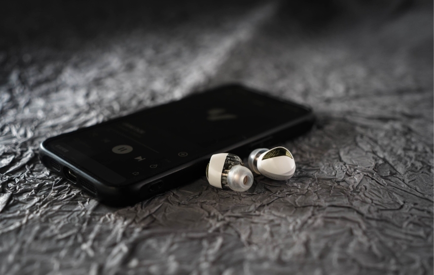 佩戴體驗:經優化的小巧機身,搭配獨家短型細管導音嘴與親膚醫療級矽膠耳膠(表面經防污微點加工),即使長時間佩戴也能保持舒適穩固,並提供卓越的被動隔音效果。