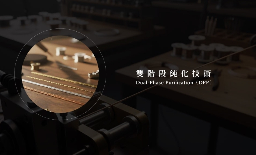 為了確保每一根導線的純度達到理想的狀態,Elegy to Lucia 首次引入革命性 Dual-Phase Purification(DPP)雙階段純化技術,徹底顛覆業界常規線材精煉流程。每種導體材質先經過初始蒸餾去除表面氧化與微粒,隨後進入二次精煉階段,運用專利熱控與電磁調變技術,深入晶體結構層級剔除殘餘雜質,形成均勻緻密的單晶趨近結構,晶界阻力降至最低。