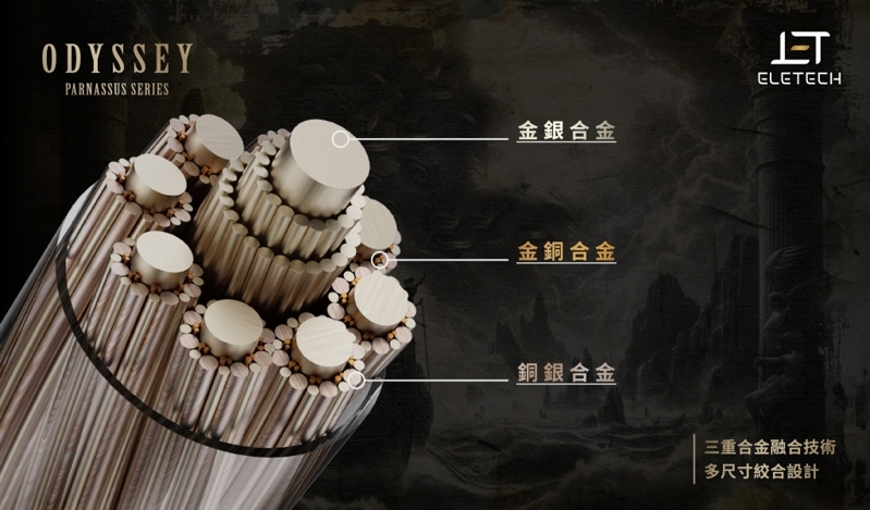 Odyssey是 Eletech 古希臘史詩三部曲的輝煌終章,正如《奧德賽》以英雄歸鄉完結特洛伊傳說,Odyssey以無可挑剔的聲音表現與精湛工藝,宣告 Eletech 在高保真音響領域的終極成就。其聲音風格上延續了Iliad和Aeneid的優點,並在此基礎上加以改良。Odyssey首次採用「三重合金融合技術」以及建築學當中「黃金比例」的幾何結構理念,分別融合金銀合金、金銅合金以及銀銅合金三種頂級物料,實現音樂性與技術精準的絕妙平衡。猶如奧德修斯以智慧與堅韌穿越試煉,為每段旋律注入靈魂,引領用家們踏上史詩般的聽感之旅。