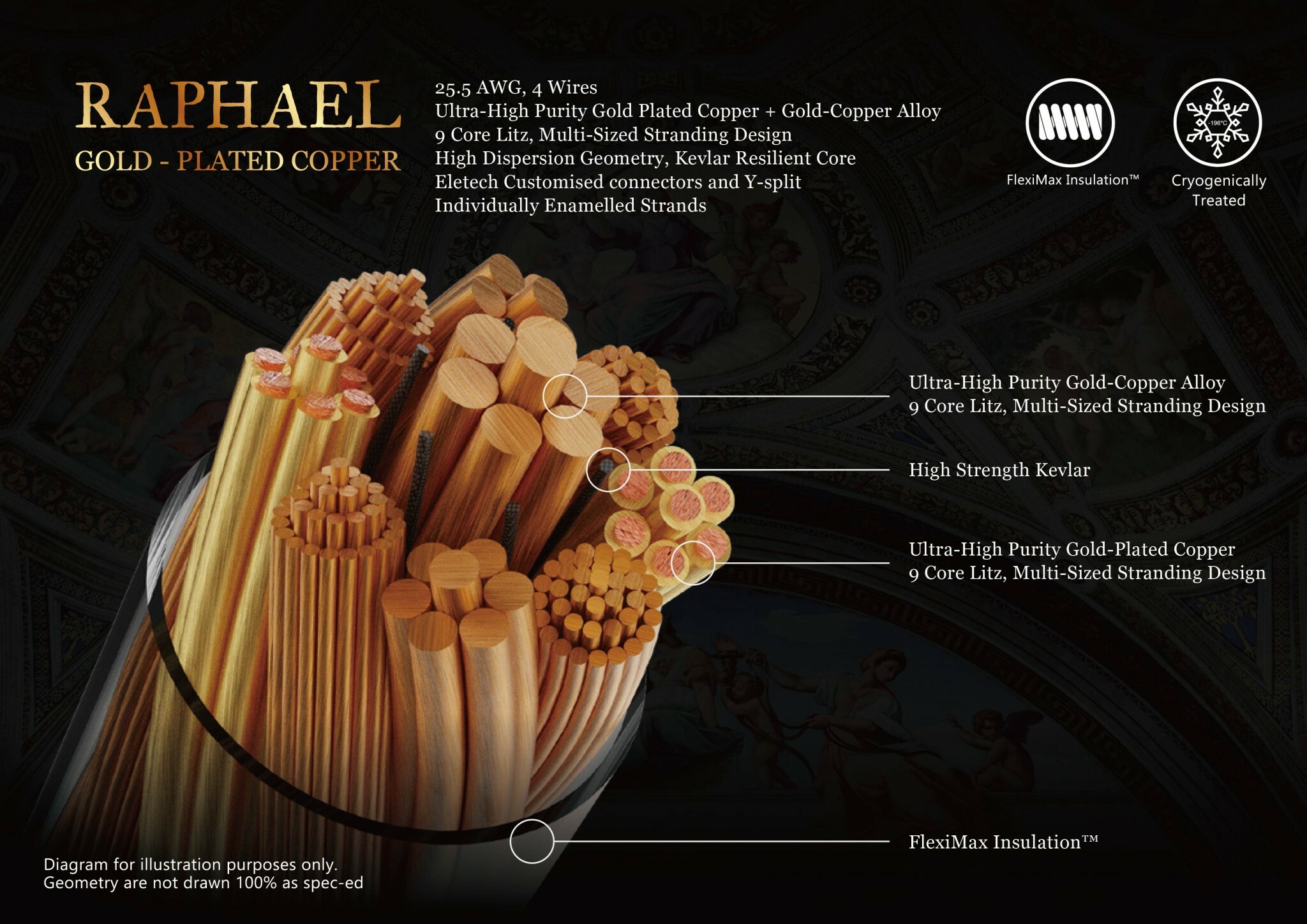 Raphael的設計靈感源自「文藝復興時期三傑」之一的著名畫家拉斐爾,他在梵蒂岡宗座宮殿的機要室內先後繪製《雅典學院》、《帕爾納斯山》等壁畫鉅作,其後在公元1511年完成《三德像》這幅作品。Eletech將拉斐爾在藝術層面上對線條、色彩的細膩掌控,以及構圖哲學融入至線材當中。