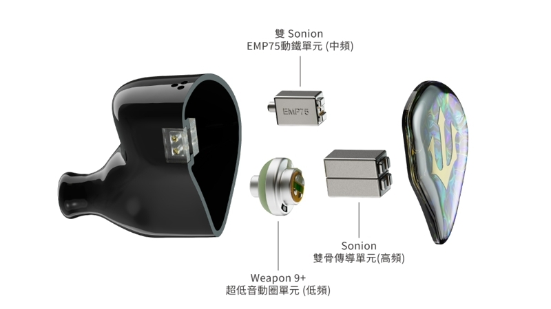 - 1x Sonion EMP75動鐵單元 (中頻)