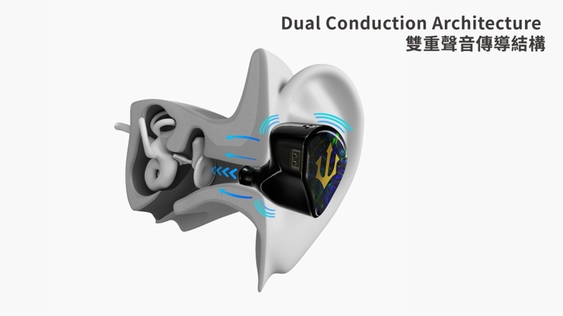Triton 採用了新一代的三混合單元配置,包括 Sonion 全新研發的雙骨傳導單元,這為整體帶來了強大的空間感和瞬態反應表現。配合能夠打造出強勁低音震撼力的 Weapon 9+ 超低音動圈單元,以及Sonion EMP75 動鐵單元,在豐盈水潤的中頻人聲之下,提供了強大震撼力的低頻鋪墊,讓您享受更完整立體的空間音效與極致解析力及聲音細節。此外,Triton 為 5Hz 至 100kHz 全頻段設計了「雙重聲音傳遞結構」,使得三種單元在聲學效能上能夠並駕齊驅,最終實現一款貼近自家旗艦型號音樂感和層次感的高階型號作品。