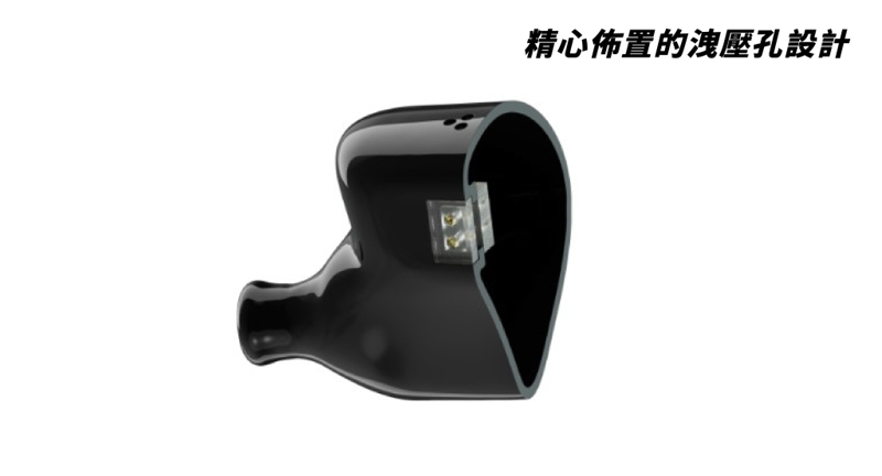 由於TRITON搭載了W9+超低音動圈單元和骨傳導單元,調節龐大的空氣流動成為筐體設計的核心挑戰。通過精密的計算,品牌在外殼上設計了創新的排壓氣孔。這些氣孔能夠有效調節筐體內的空氣流通,為動圈和骨傳導單元提供最適宜的空氣動力,從而充分發揮單元的潛力。透過重新計算的排壓氣孔口徑,不僅使低音更加乾淨,還能促進聲音振動的順暢傳遞,營造更寬廣的聲場,使聽感更加自然。