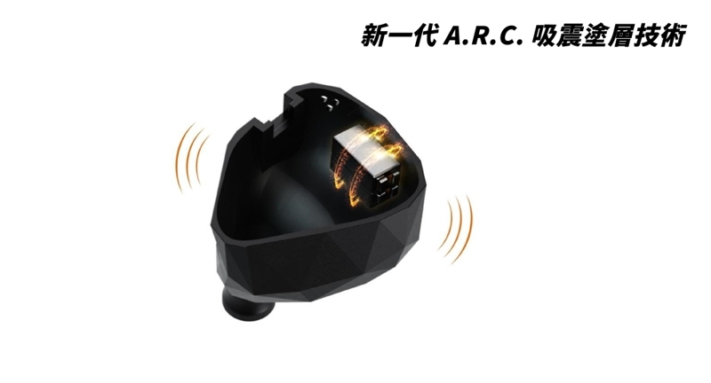 Empire Ears特別為A.R.C.吸震塗層技術有著進一步的提升,更在Triton內部的單元、分音器、管道加上 A.R.C. 塗層,有效地減低骨傳導單元發聲時多餘的聲波諧震,全面增強了骨傳導單元的聲學性能,令聲音細節上更為清晰自然,且低音更為沉厚。