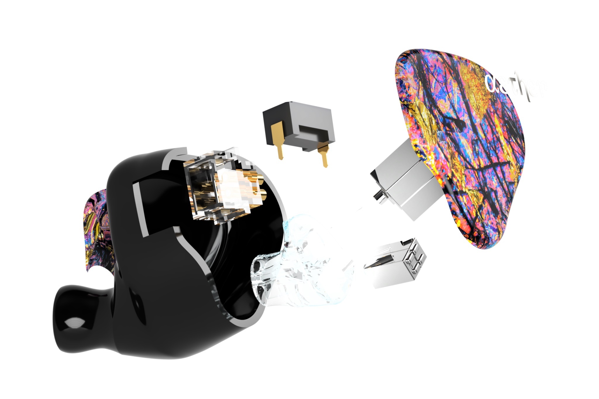 Aether在希臘文意思如天空上的純淨明亮,基於這個概念設計出新一款入門耳機。面板以櫻花概念,配上4動鐵單元組合及DIP Switch配置,可以讓人恍如置身於櫻花大道慢步,呼吸著純淨、新鮮的空氣。