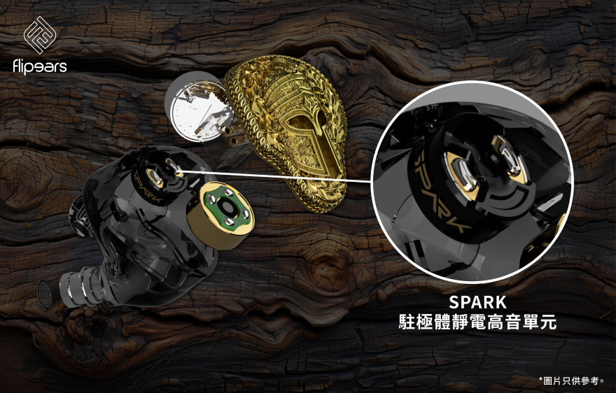 FlipEars全新研發的 SPARK駐極體靜電高音單元 展現了入耳式耳機中罕見的高頻表現力。相較傳統靜電單元需依賴外部極化電壓驅動的特性,駐極體靜電單元憑藉其預先極化的薄膜設計,不僅大幅簡化驅動需求,更能在微型化結構中實現極致通透的高頻延伸。SPARK單元透過獨家調校的駐極體振膜,擁有更優秀的供電效能與靈敏度,特別在高頻響應延伸性、細節還原上纖毫畢現,無論是弦樂器的泛音光澤、人聲氣音的細膩顫動,抑或電子合成音效的飄逸空氣感,皆能精準捕捉並呈現出近乎無邊界的空間層次。