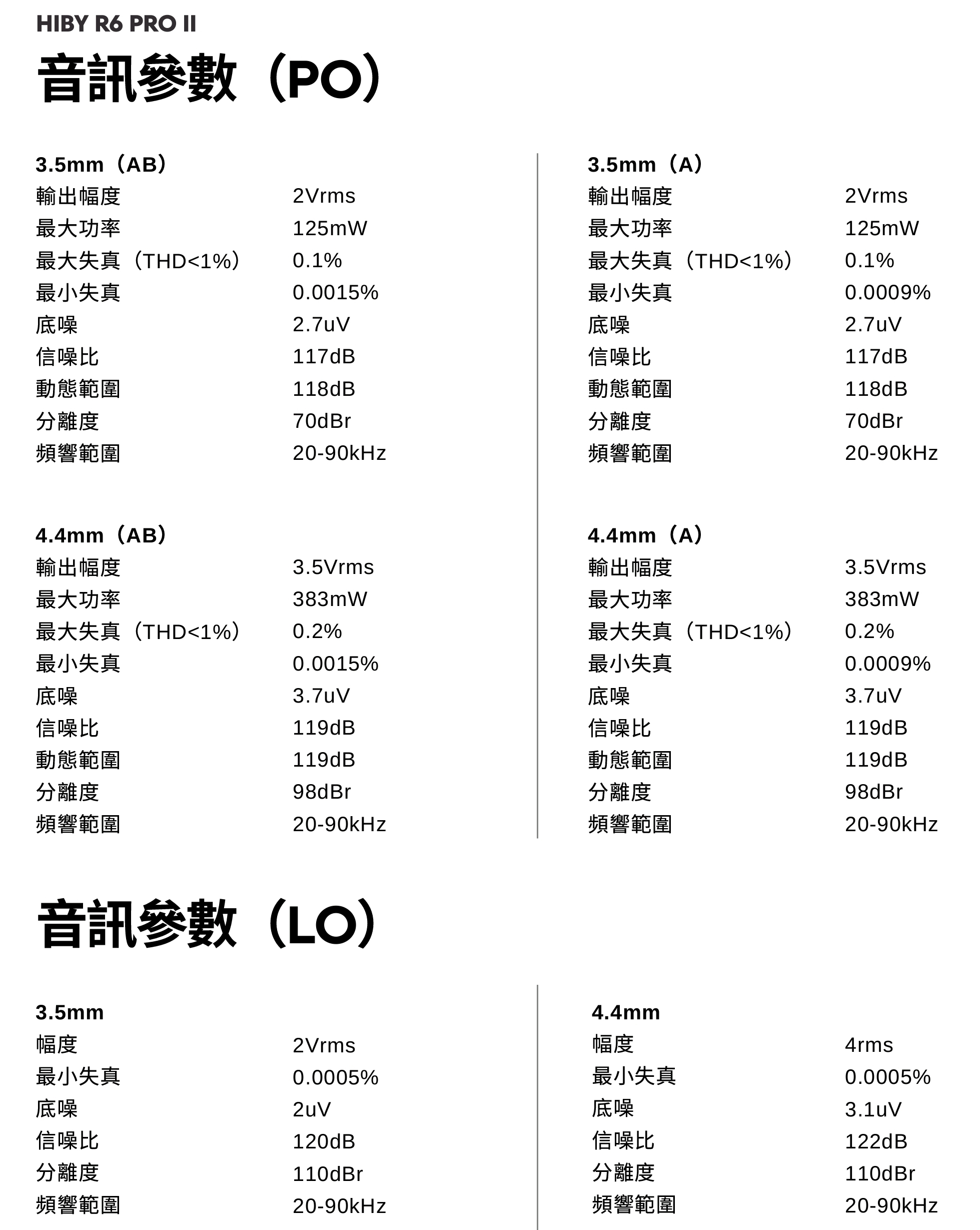R6 Pro II以新世代R系列播放器為基礎,採⽤AKM公司推出的全新旗艦解碼⽅案AK4491 + AK4499EX,獨⽴供電電路分區更加細緻,並由2顆OPA1652及16顆訂製電晶體組成Class A/AB可切換⽿擴電路。延續眾多R系列播放器的優點,同時加⼊創新的藝術元素,令R6 Pro II成為HiBy承先啟後的標誌。