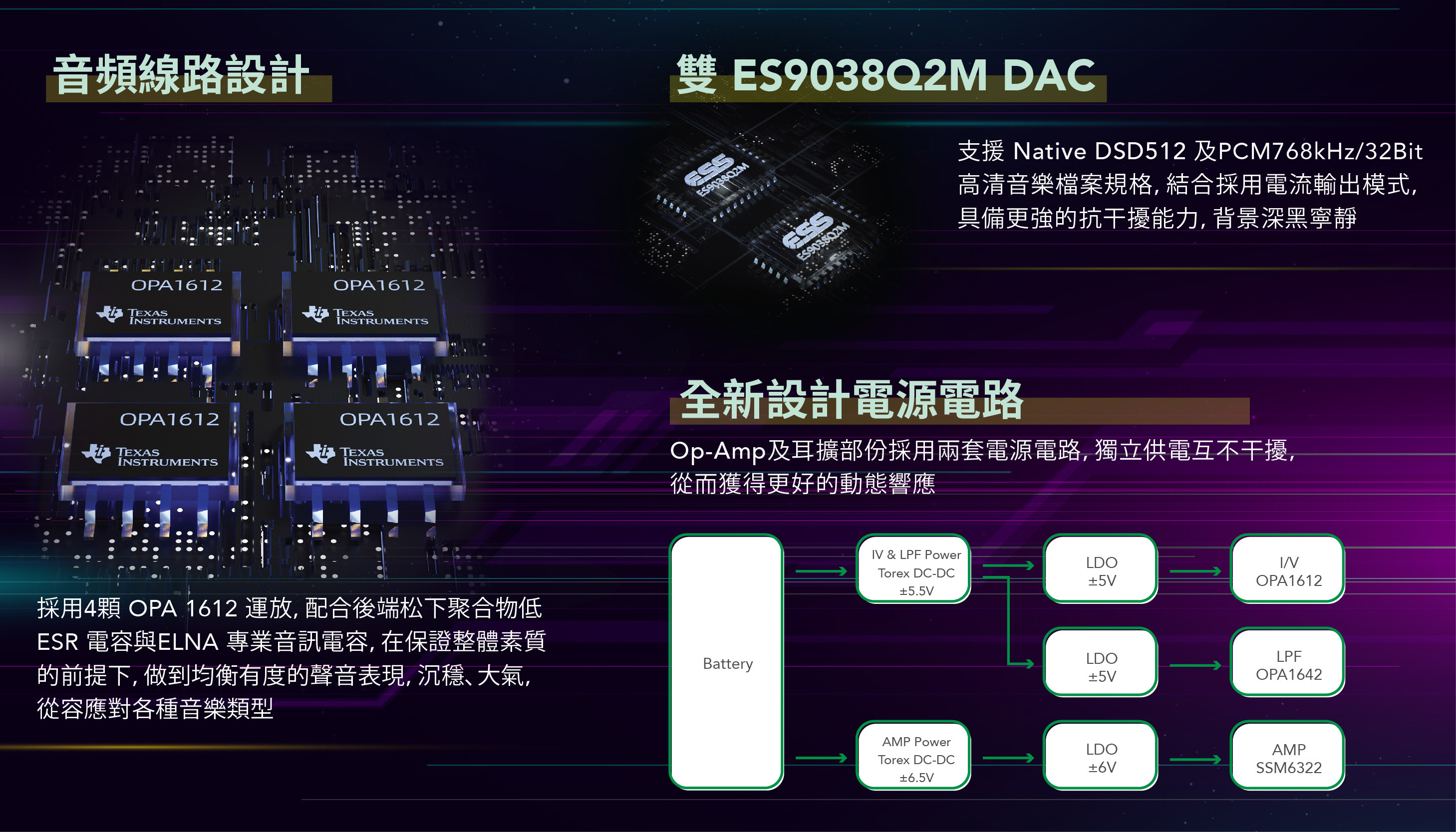 Op-Amp及耳擴:OPA1612 x 4(Op-Amp)、SSM6322 x 2(耳擴)