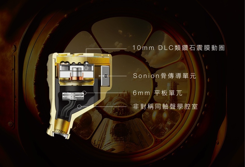 Jomo Audio自品牌成立以來,都以提供高性能定製耳機為主要業務,藉由創新的設計概念,多年來更是為市場帶來不少出色的耳機作品。本次品牌更參考科幻小說《海底兩萬哩》中的鸚鵡螺號,同時融合豐富工業科技風的蒸汽龐克元素。在CNC鍍金黃銅外殼內部,採用由10mm DLC類鑽石震膜動圈、6mm平板單元、Sonion骨傳導單元所組成的三混合配置,為一眾追求豐富樂感的用家帶來全新作品Nautilus。
