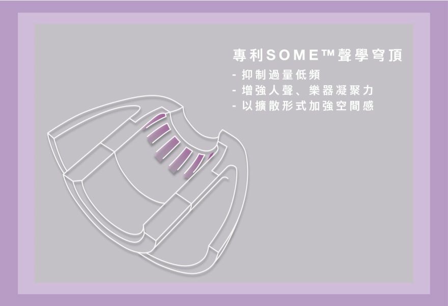 品牌專利的 SOME™聲學穹頂,有效增強人聲、樂器的凝聚力,同時利用窄小的出音嘴設計,令來自airpod pro/pro 2的音訊,可以透過繞射的方式傳遞,加強整體的立體感!