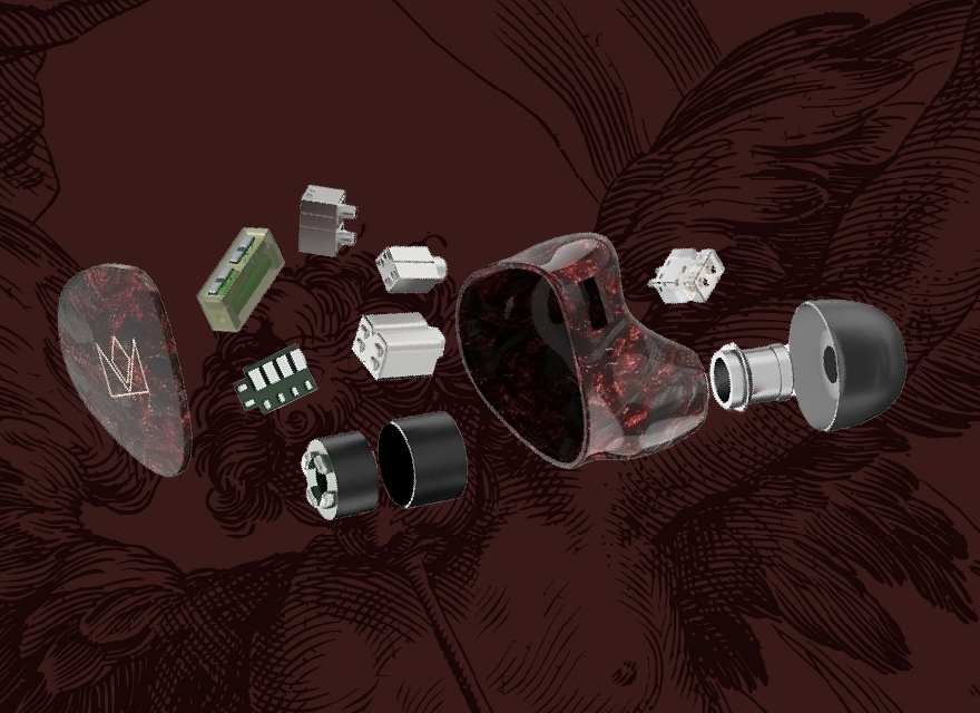 亦選用2枚的Sonion動鐵負責耳機的中頻,2枚Sonion的靜電單元負責高頻,因此可以呈現出清晰精緻的人聲、樂器細節,並且在頻率銜接更為流暢自然,進一步帶來如同穿梭於三界的聽覺享受。
