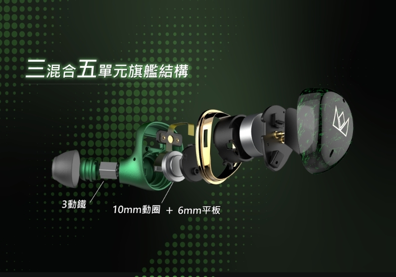 FoKus Rex5 搭載「三混合五單元」配置,包括 10mm 動圈、6mm 平板和三動鐵單元。動圈單元展現自然音色,強勁低音延展;動鐵單元提供高音解析、快速反應和清晰細節,豐富音樂細節和樂器分離;平板單元為高頻帶來細膩聲音,順滑自然。每個音樂細節均得以完美展現,音樂深度和清晰度達到前所未有高度。FoKus Rex5 輕鬆處理豐富低音和清晰高音,帶來身臨其境的音樂享受。