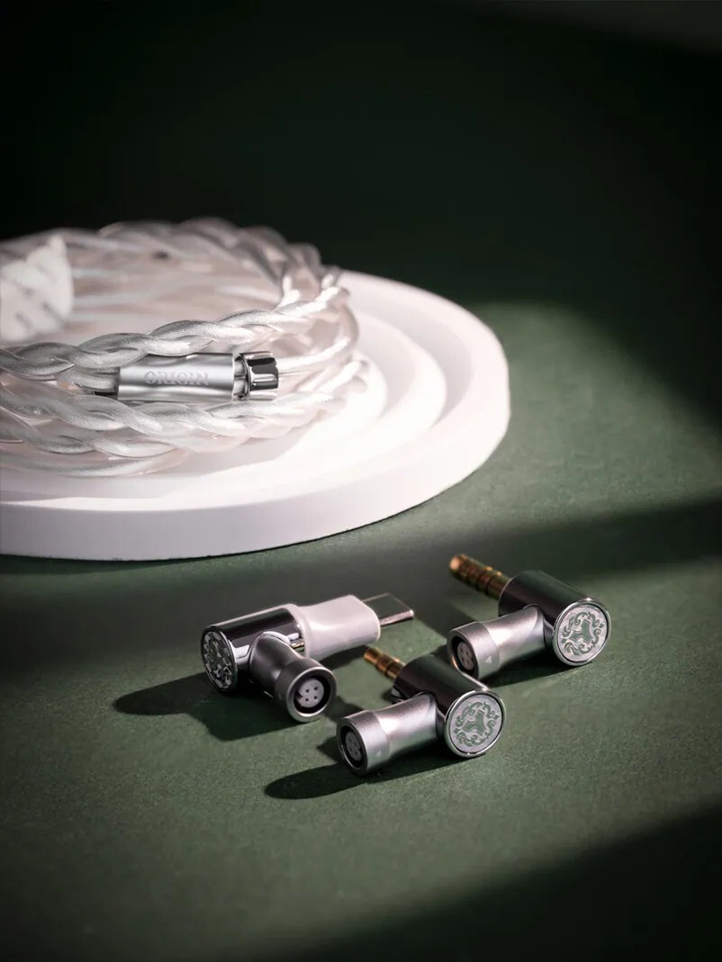 .高品質銅銀混編線:採用 Litz 結構與同軸屏蔽,隨附 3.5mm單端、4.4mm平衡及 Type-C(帶DSP芯片)可換插頭。