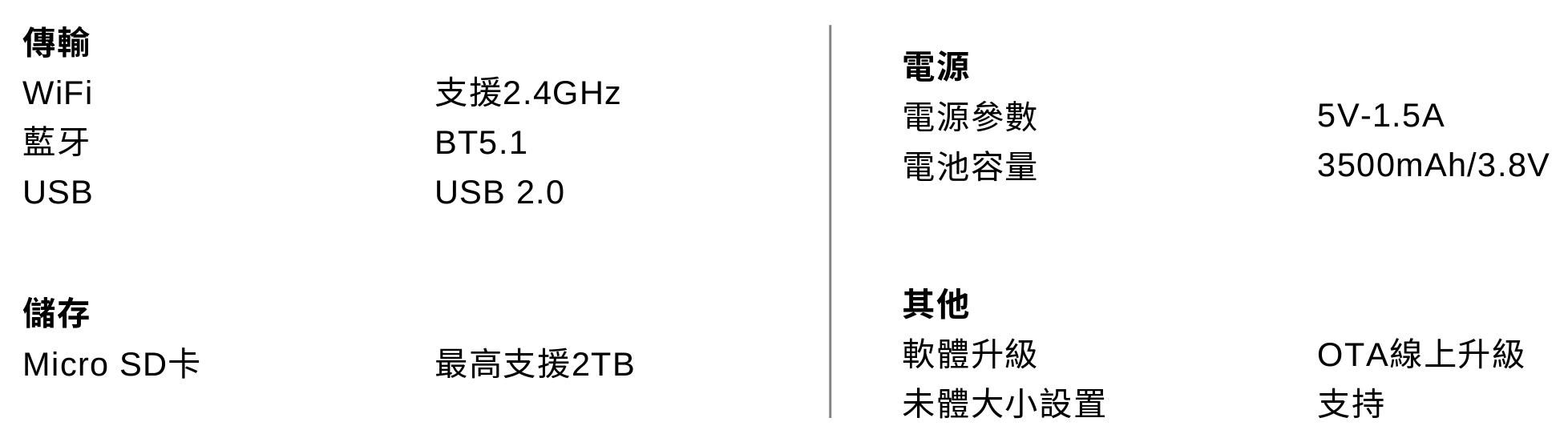 產品參數