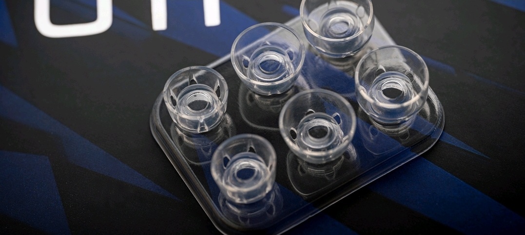 UM傘狀液態矽膠⽿膠UM Transparent Ear Tips,採⽤與嬰兒奶嘴⼀樣的矽膠材質,柔軟有彈性。⽿膠分為有孔型Open Tips和無孔型Petal Tips,可根據個⼈喜好替換使⽤。有孔型⽿帽延邊設計加⼊了6個疏氣⼩孔,⻑時間佩戴舒適度較好,也讓你能夠時刻留意周邊環境。